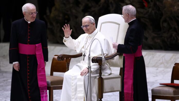 León XIV mantuvo este lunes su primera audiencia con la prensa acreditada en el Vaticano, un encuentro programado en el aula Pablo VI.