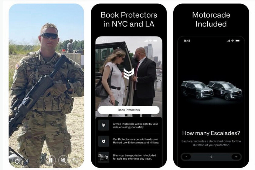 Protector es la app americana por excelencia. Y lo es porque permite alquilar los servicios de un guardaspaldas armado como si fuera un Uber. De heho hay quien ya la ha bautizado así, “Uber con armas”.