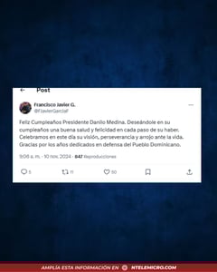 Por su parte, Francisco Javier García, miembro del Comité Político del PLD, también le extendió sus buenos deseos, deseándole salud y felicidad.