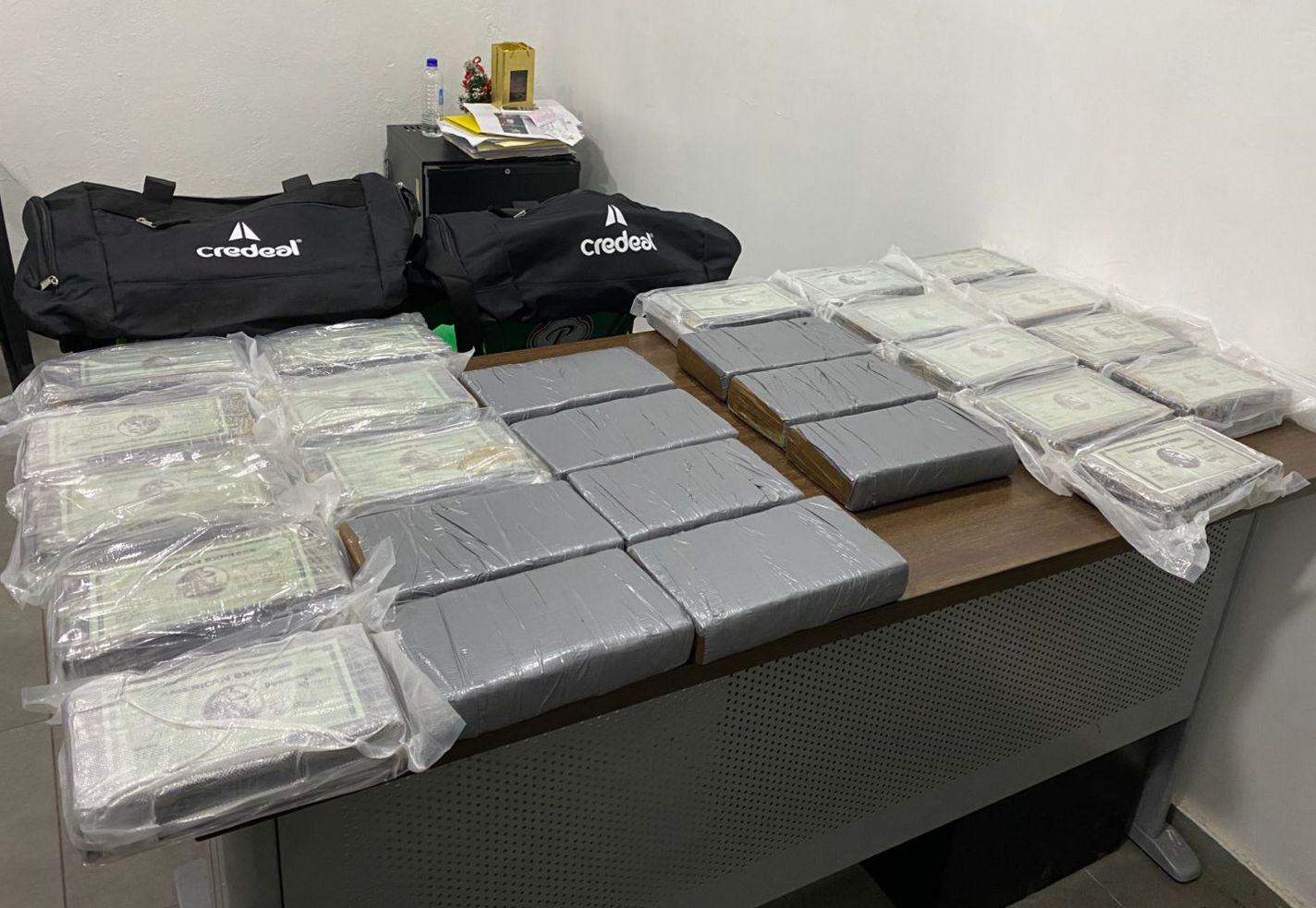 Como evidencias, se decomisaron dos bultos negros que contenían la sustancia, cinco tarjetas bancarias (crédito y débito), un cargador portátil y RD$6,200 en efectivo. También fueron retenidos dos vehículos vinculados al caso: un jeep Grand Cherokee gris, modelo 2011, y un Kia Sorento gris sin documentación.