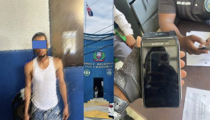 El Pregonero, San Cristóbal.- Agentes de la Policía Nacional, adscritos a la Dirección Regional San Cristóbal, apresaron al nombrado Jorge Yadiel Mejía Suero, de 22 años, residente en el sector Hojas Anchas, S.C. El mismo fue sorprendido mientras transitaba por la vía pública en la calle Osvaldo Basil, sector Hatillo, portando un Verifone marca Castle, de color negro con blanco, utilizado en esta actividad ilícita.