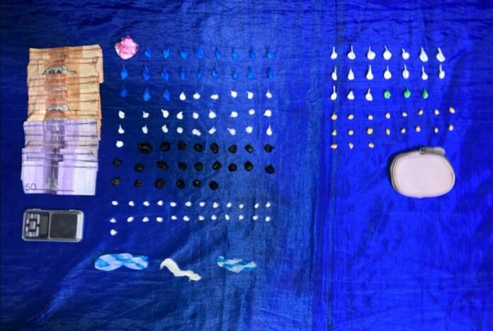 En total, fueron incautadas 66 porciones de cocaína con un peso aproximado de 55.7 gramos, 44 porciones de crack con un peso aproximado de 11.7 gramos, y 23 porciones de marihuana con un peso aproximado de 15.1 gramos.
