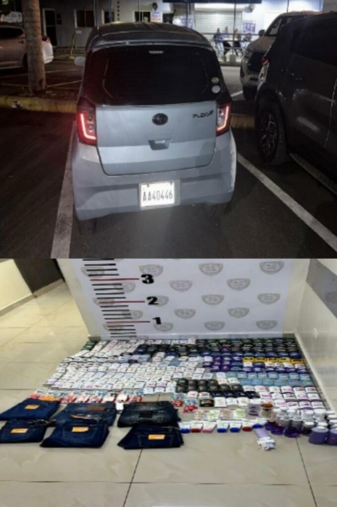 Durante el registro del automóvil, se incautó un saco verde que contenía mercancías presuntamente sustraídas, entre las que se encontraban pantalones, desodorantes, cepillos dentales, cremas y jabones. Según declaraciones de Miguelina Guzmán, los artículos habían sido robados y estaban destinados a ser vendidos a Ramón Alberto Gómez Urtarte.