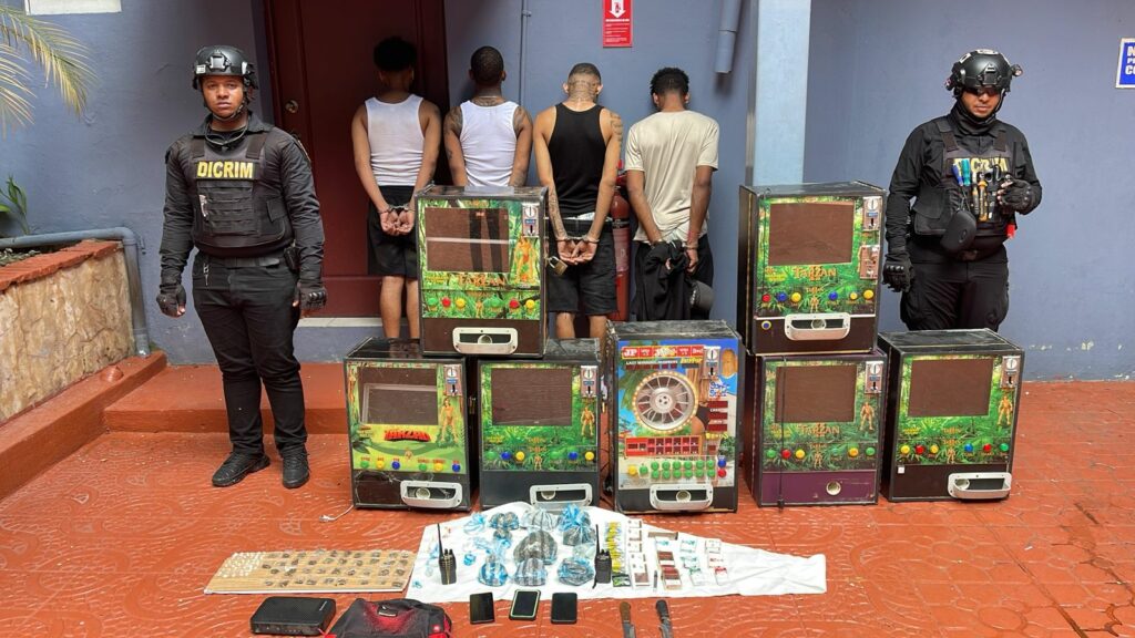 Asimismo, fueron ocupados dos radios de comunicación, 14 cajetillas de cigarrillos de distintas marcas, dos cuchillos y siete máquinas tragamonedas utilizadas de manera ilegal en lugares donde, según informes de inteligencia, operaban puntos de venta de sustancias controladas dirigidos por individuos identificados como “Carlos Yerba”, “Yoryi”, “El Menor” y “0880”.