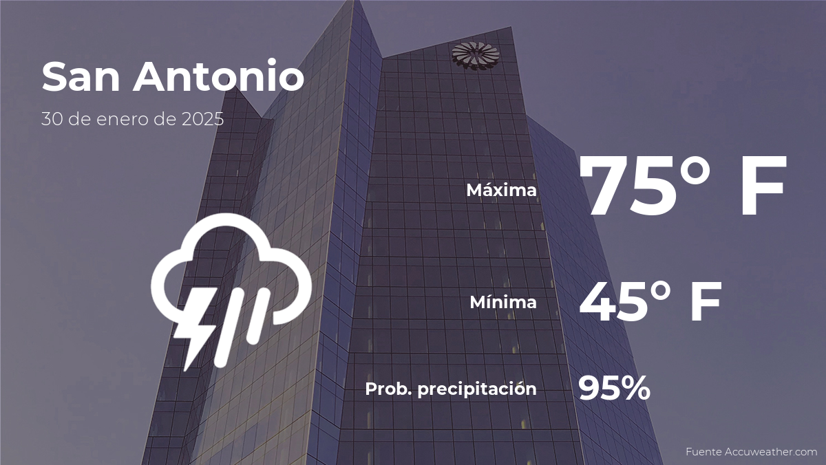 Si vives en San Antonio o te encuentras de turismo esta ciudad del sur de Texas, es importante saber cómo va a estar el tiempo este jueves 30 de enero. Desde veranos cálidos hasta inundaciones ocasionales, es crucial saber qué esperar y cómo prepararse para hoy en la ciudad.