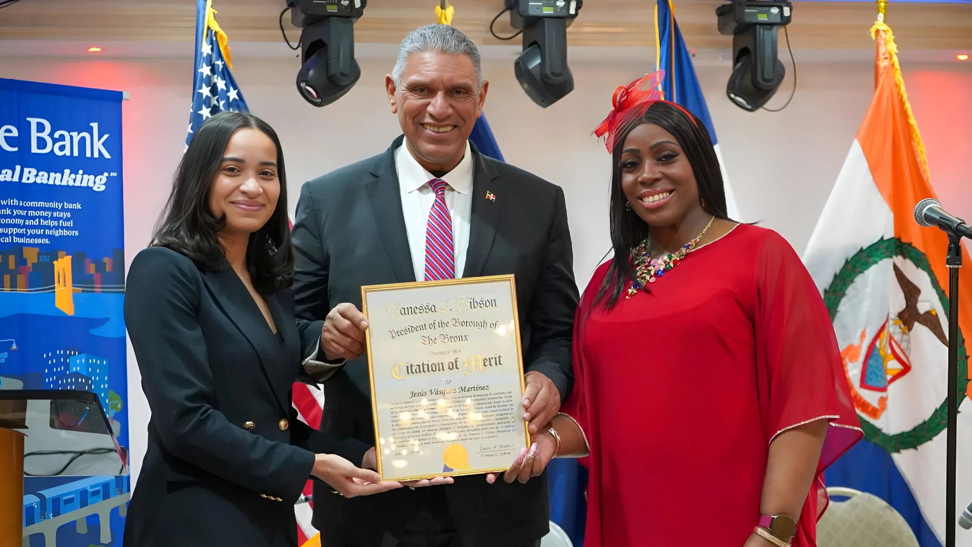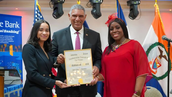 NEW YORK, EEUU.- El Cónsul General de la República Dominicana en Nueva York, Jesús Vásquez Martínez, recibió un reconocimiento por su destacada trayectoria gubernamental en un evento organizado por la presidenta del distrito del Bronx, Vanessa Gibson.