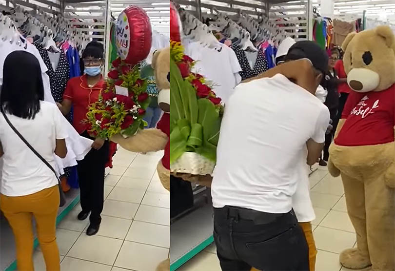 En una tienda ubicada en Hato Mayor, una mujer recibió un gesto inesperado que marcó un momento especial. Mientras realizaba sus compras, alguien le entregó un ramo y le dijo: “Carmen es suyo eso. Coja sus flores, mire qué bellas están”. Ella observó el obsequio con atención, sin imaginar lo que ocurriría después.