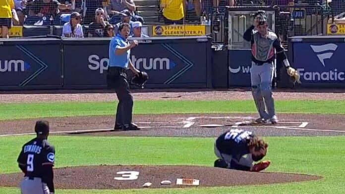 TAMPA, Florida.. En un momento alarmante antes del inicio del juego entre los Marlins de Miami y los Rays de Tampa Bay en el George M. Steinbrenner Field, el lanzador zurdo Ryan Weathers fue golpeado accidentalmente en la cabeza por un tiro de su propio receptor, Nick Fortes, mientras realizaba sus últimos lanzamientos de calentamiento.