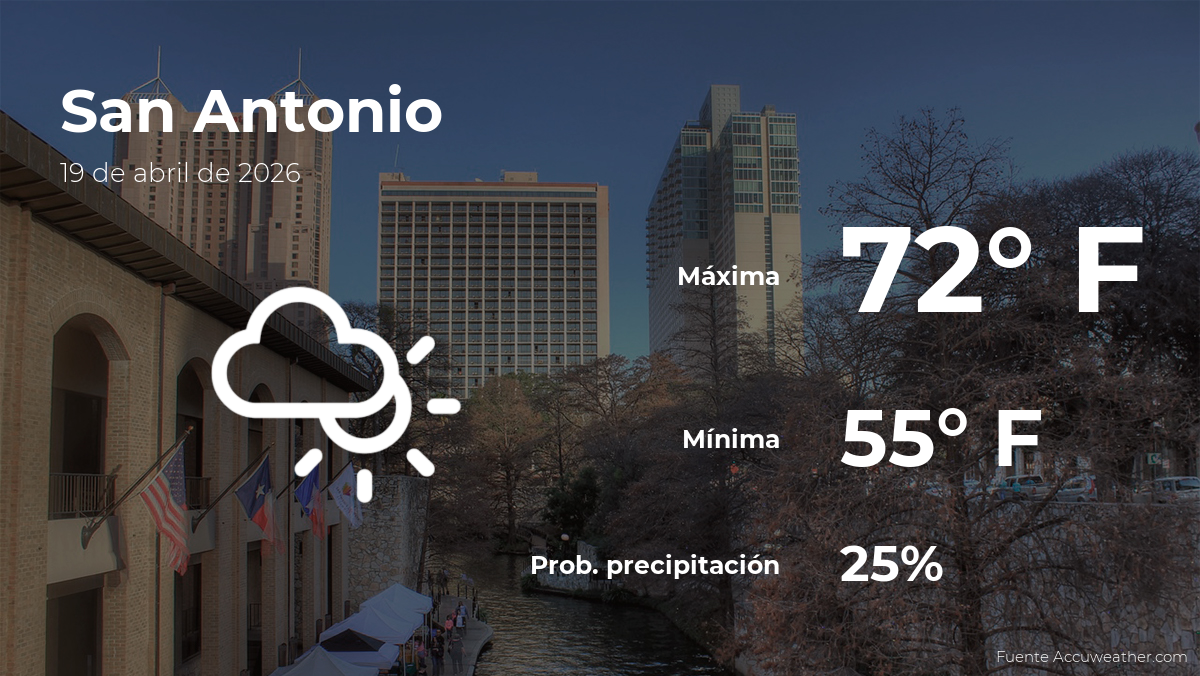 Si vives en San Antonio o te encuentras de visita esta ciudad del sur de Texas, es importante saber cómo va a estar el clima este domingo 19 de abril. Desde veranos cálidos hasta inundaciones ocasionales, es necesario saber qué esperar y cómo prepararse para hoy en la ciudad.