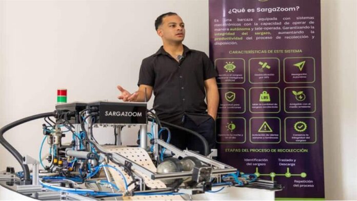 El ingeniero en mecatrónica Rómulo Pérez, egresado del Instituto Tecnológico de Santo Domingo (Intec), desarrolló *SargaZoom*, una embarcación autónoma diseñada para la recolección de sargazo en el mar. El prototipo, con estructura de catamarán, opera sin tripulación mediante el uso de cámaras, sensores y GPS, y se activa con un solo botón para identificar y recolectar el alga.