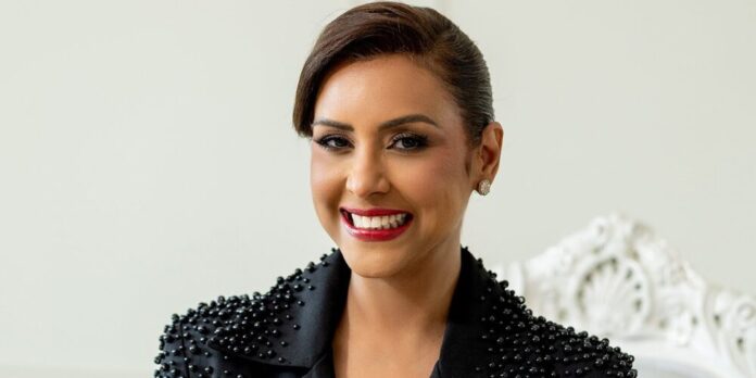 Selinée Méndez llevó un clásico peinado realizado por la estilista Lucy Perrone, que deja ver completamente su rostro, con un maquillaje discreto, ejecutado por Lydiana Rodríguez. Para completar el look total, la diputada optó por modernas piezas de diamantes, con un reflejo de la perfección natural y el arte de su tallado, de la casa de joyas dominicana HS JEWLS, aportando un brillo sutil pero impactante a su estilismo.