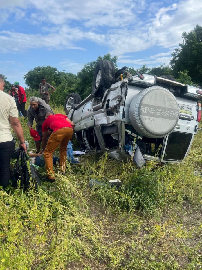 Siete heridos tras caída de jeep al vacío en la avenida Circunvalación de Baní