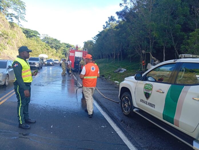 Un accidente de tránsito ocurrido este miércoles en el kilómetro 49 de la Autovía del Nordeste, cerca del Salto Socoa en la provincia Monte Plata, dejó como saldo un fallecido y dos personas lesionadas. El fallecido fue identificado como Santos Paredes Saldaña, de 51 años, residente en Villa Rivas. Los heridos, Katerinne Beatriz Díaz Aquino (34 años, de Santo Domingo) y Daniel González de los Santos (25 años, de Piedra Blanca, Bonao), recibieron atención inicial en el lugar por parte de unidades del Sistema Nacional de Atención a Emergencias y Seguridad 911.