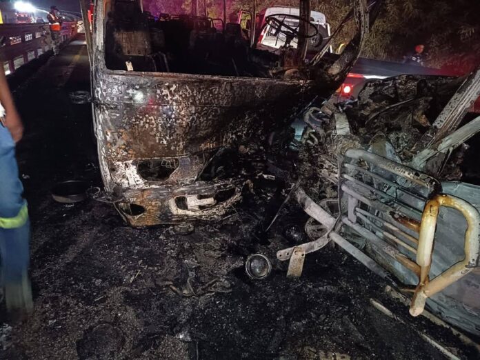 Un hombre falleció la noche del viernes tras una colisión entre un minibús y una yipeta en el puente de Cumayasa, La Romana. La víctima, que viajaba en la yipeta, no ha podido ser identificada debido a las graves afectaciones causadas por el intenso incendio. El conductor del minibús resultó lesionado y permanece recibiendo atención médica en un centro de salud local. Datos preliminares indican que los vehículos registraron un impacto frontal, lo que generó un incendio que comprometió severamente ambas unidades. El médico legista Benito Kelly acudió a la escena y confirmó que el cuerpo corresponde a un ciudadano de sexo masculino. Unidades del 911 llegaron rápidamente al lugar, acompañadas por miembros del Cuerpo de Bomberos que lograron controlar las llamas. Agentes de la Digesett coordinaron el tránsito en la zona, mientras personal policial y militar aseguró el perímetro. Las autoridades informaron que el hecho se encuentra bajo investigación para determinar las causas exactas del accidente. Residentes de la zona manifestaron su preocupación por el incidente, que llamó la atención debido a la magnitud del incendio. Las autoridades reiteraron que ofrecerán información oficial conforme avancen las diligencias investigativas. REDACCIÓN FV MEDIOS