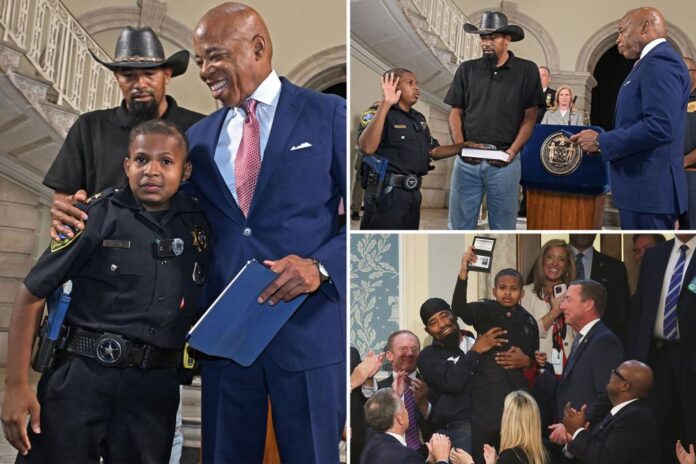 Devarjaye ‘DJ’ Daniel, un sobreviviente de cáncer cerebral de 13 años que fue juramentado previamente como agente honorario del Servicio Secreto por el presidente Trump, obtuvo otro título honorífico este martes: vicealcalde honorario de seguridad pública de Nueva York. El joven de Houston, Texas, ha reunido más de mil placas policiales y recibió su más reciente reconocimiento como principal enlace de seguridad pública en una emotiva ceremonia en el Ayuntamiento.