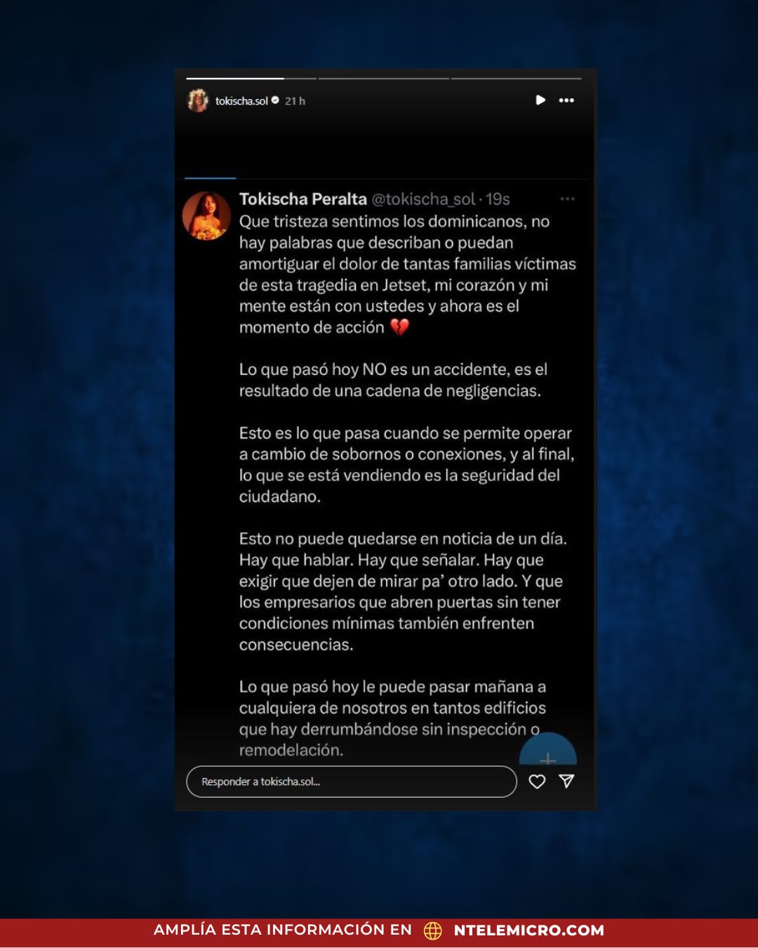 «Esto es lo que ocurre cuando se permite operar a cambio de sobornos o conexiones, y al final, lo que se pone en venta es la seguridad del ciudadano», compartió en su historia.
