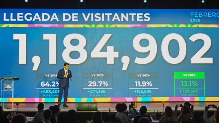 Dijo que la llegada de 1,184,902 en febrero representa un crecimiento de un 13.1% con relación al mismo mes del 2025, un 11.9% respecto al 2024 y un 64.2% frente al 2019.