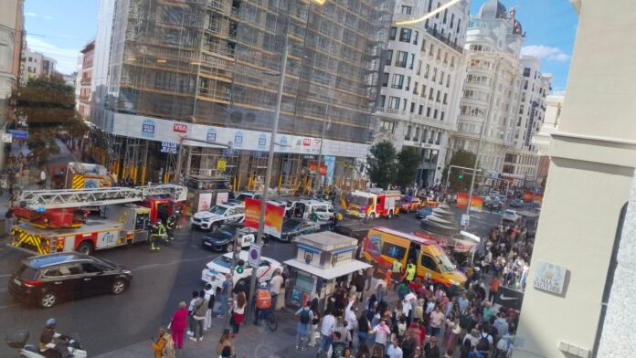 Al parecer, el fuego afectó a un edificio en obras en pleno centro, en el tramo de la Gran Vía comprendido entre la plaza de Callao y la calle Fuencarral.