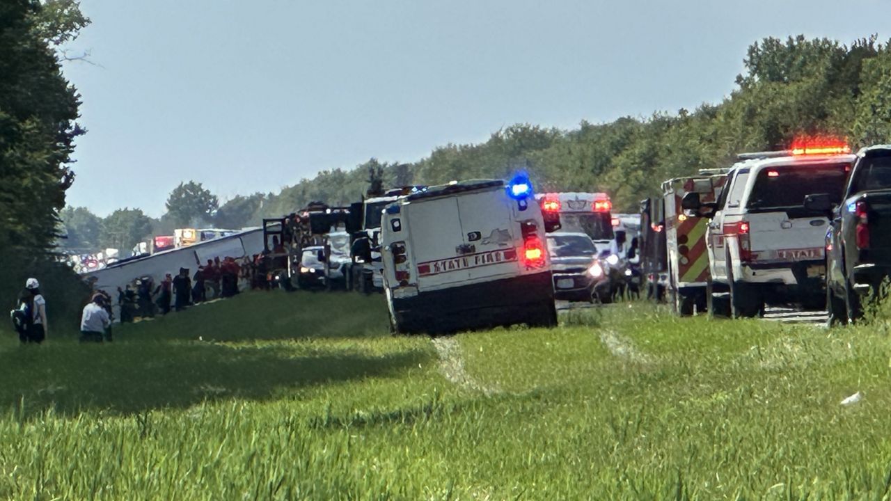 La policía informa que el autobús perdió el control, se estrelló contra la mediana de la autopista Thruway, corrigió el paso y luego se salió de la carretera. El autobús turístico se encuentra actualmente volcado.