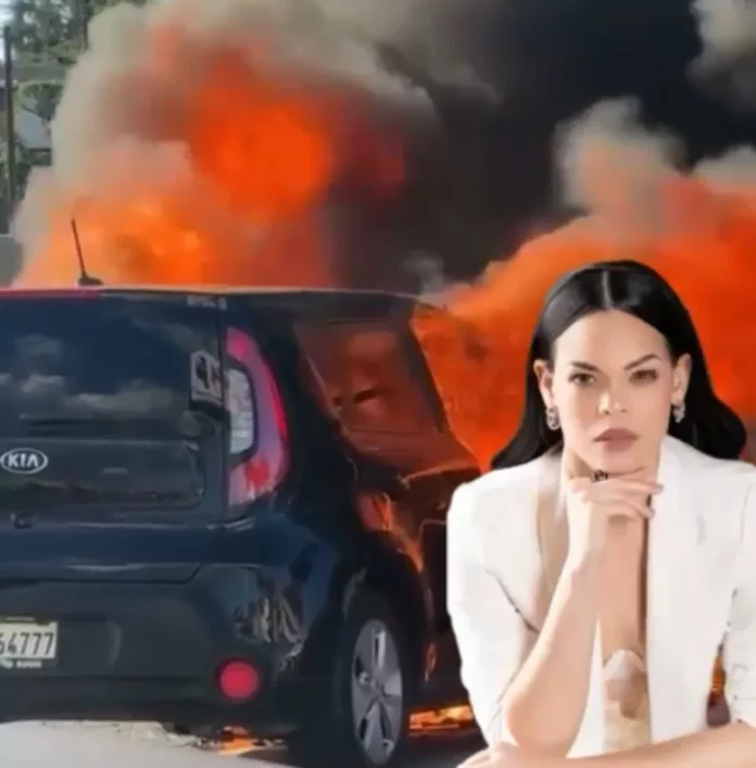 Santo Domingo. El vehículo que conducía la comunicadora Kiara Romero fue destruido por un incendio este domingo en la autopista Duarte, en dirección a Santiago.