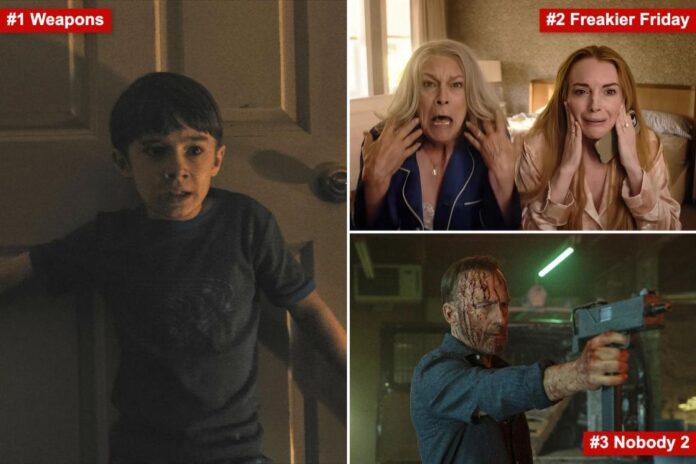 “Freakier Friday”, que perdió la batalla por el primer puesto frente a “Weapons” durante su doble estreno, mantuvo el segundo lugar con 14,5 millones de dólares a nivel nacional. La permanencia de ambas películas se produce en un fin de semana flojo para la taquilla, según Paul Dergarabedian, analista de la firma de datos Comscore.