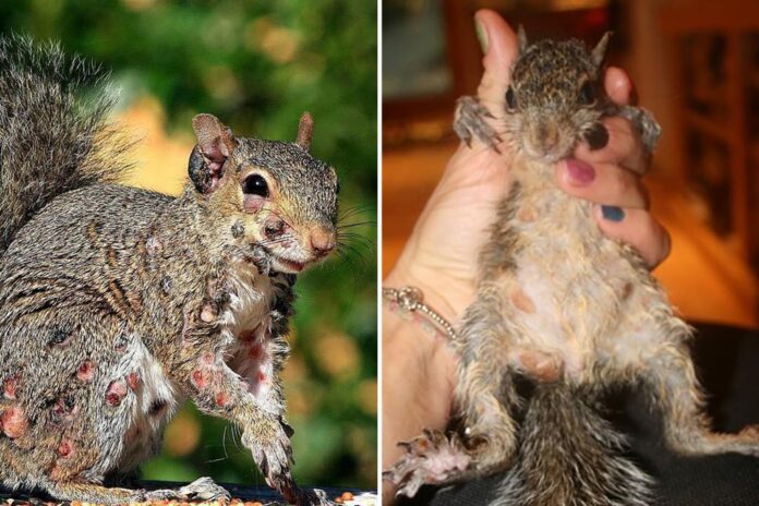 Ardillas grises con tumores similares a verrugas llenas de pus han sido avistadas en patios traseros de Estados Unidos y Canadá, según un informe. Los animales presentan llagas supurantes y zonas sin pelo en cabeza y extremidades, reportó el Daily Mail, citando publicaciones en redes sociales como Reddit y X.